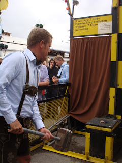 we walked towards te beer tent, but not before stopping at a couple of stands. the handsome gentleman i was with did the hammer thingie and won me got a whistle.